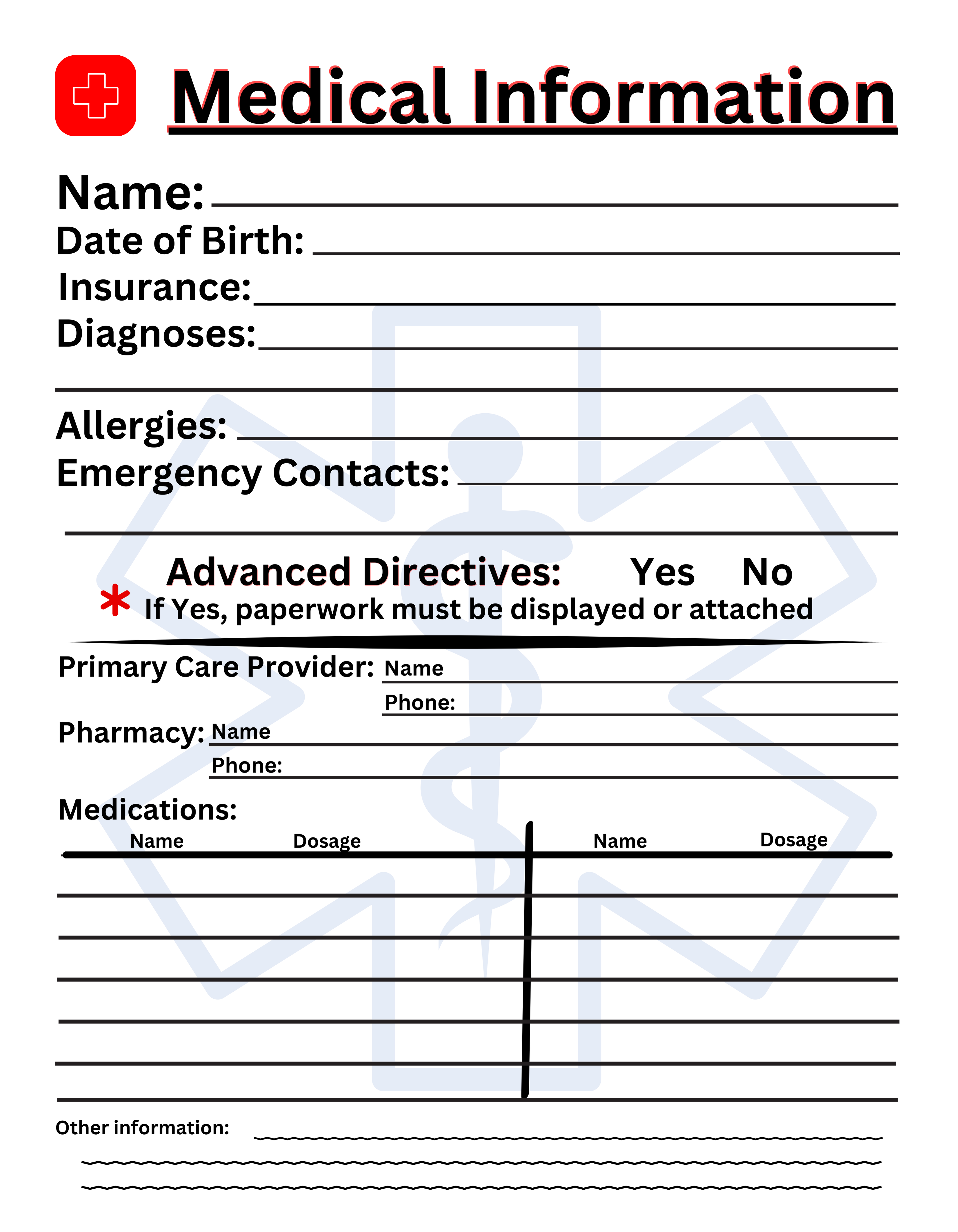 I have been meaning to do this for awhile but then saw a TikTok from a lady that cares for her 90+ year old family member. She spoke about the information, like medications, that EMS asked her for.